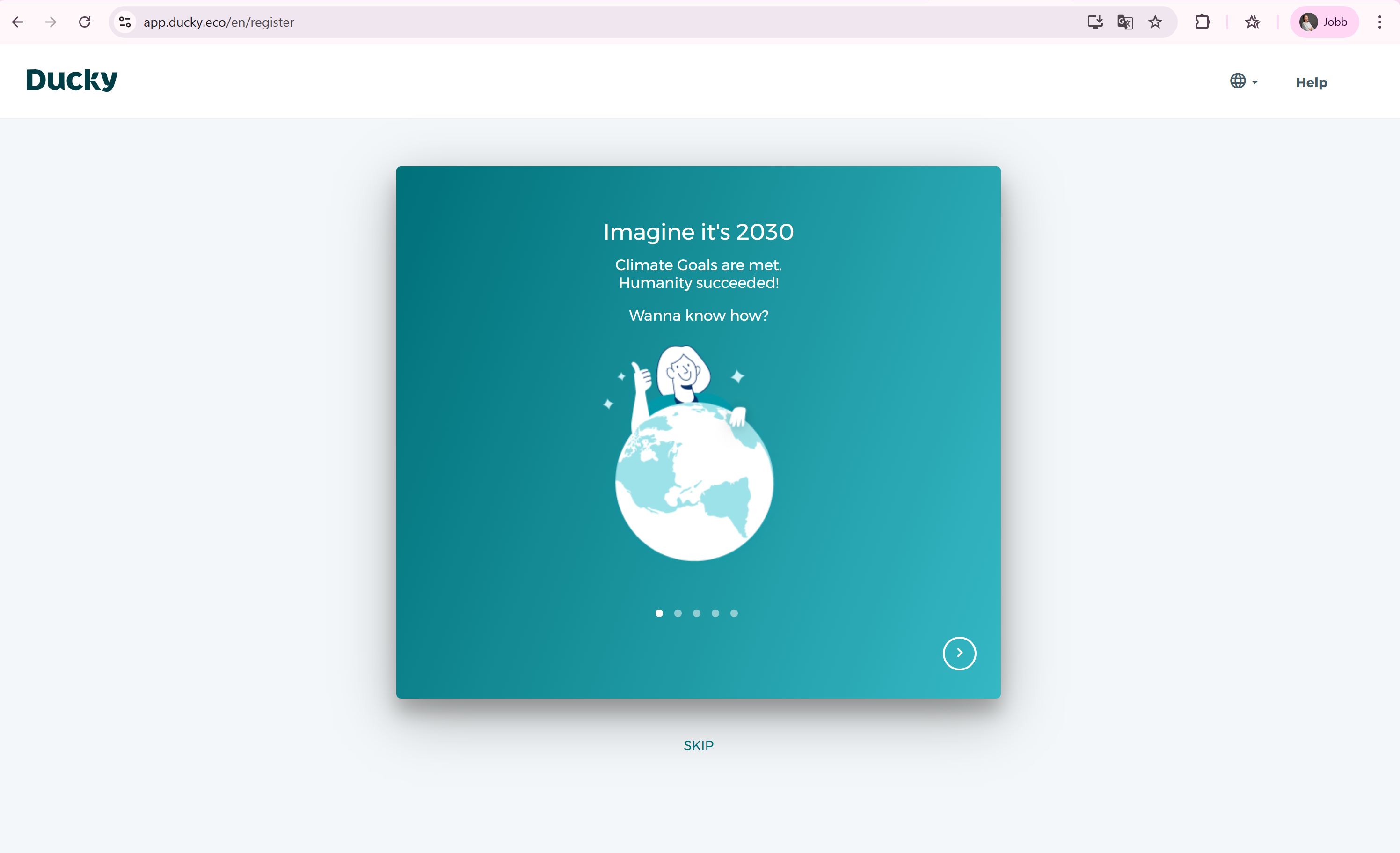 - Wait until you get to this page (app.ducky.eco/register) - that is the confirmation that the deletion of your account was successful.