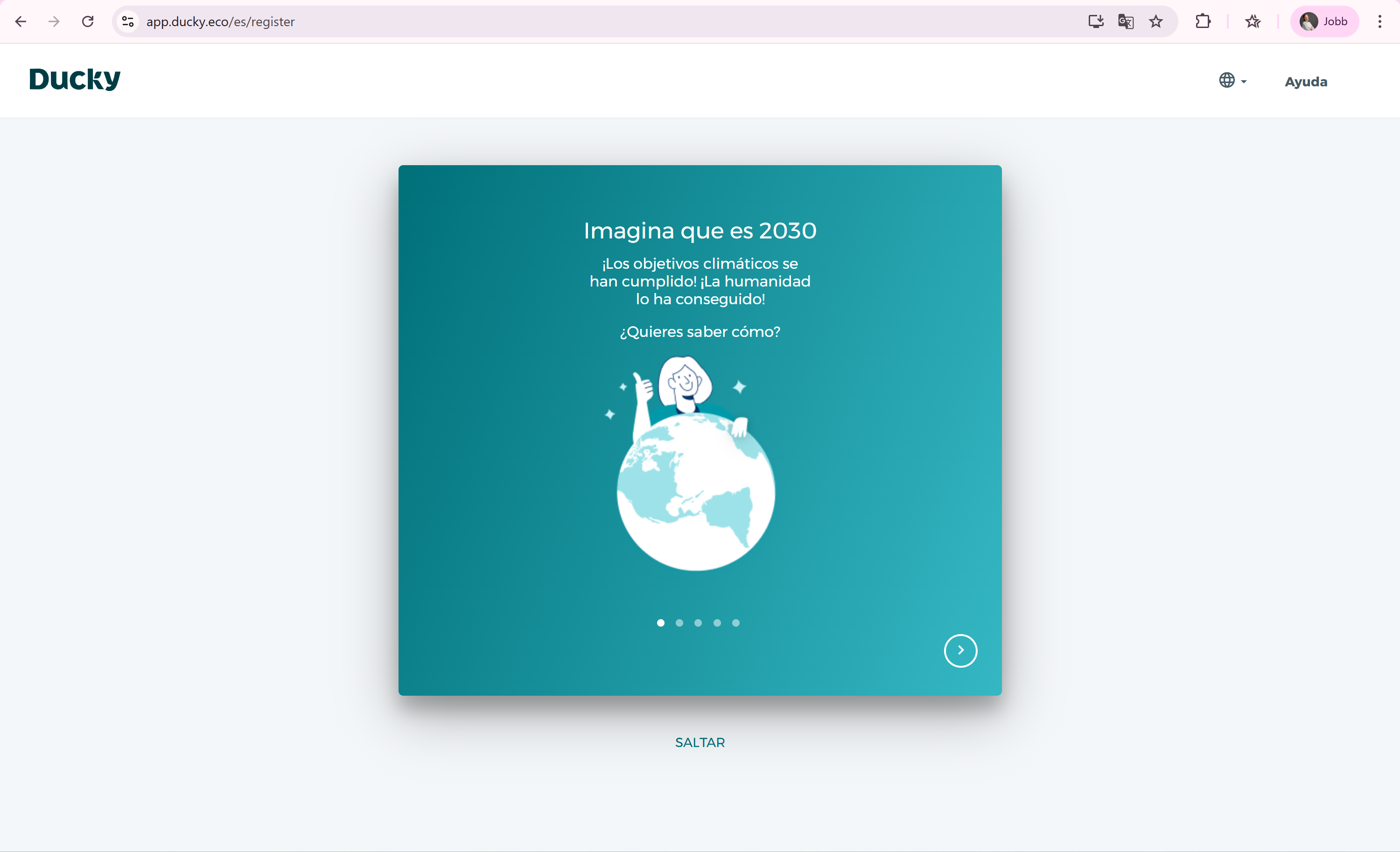 - Espere hasta que vea la página "app.ducky.eco/register": esta es la confirmación de que la eliminación de su perfil de usuario se realizó correctamente.